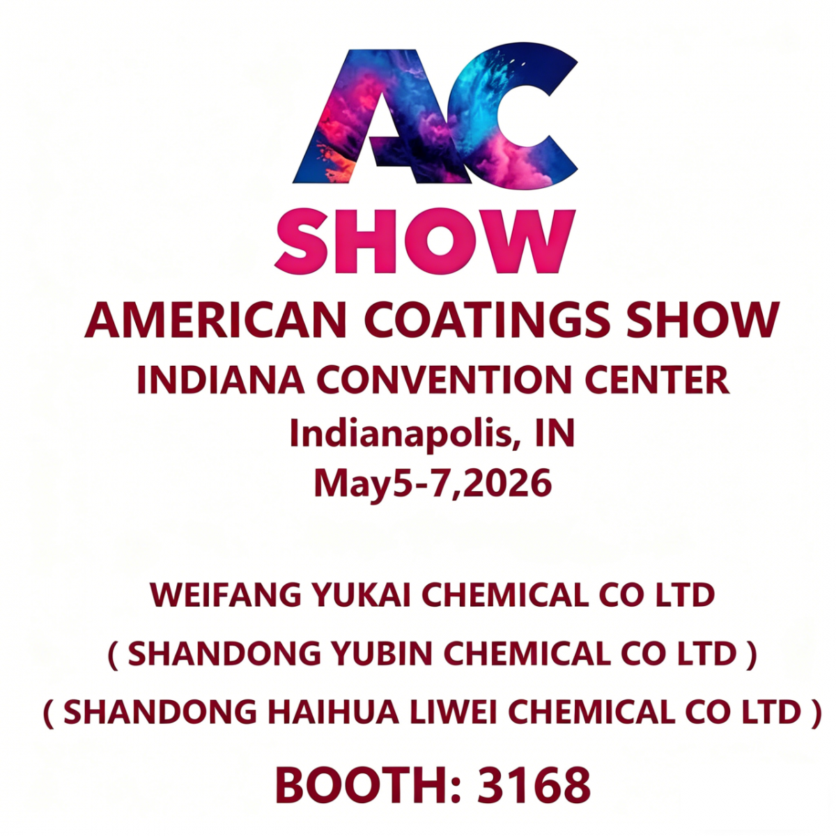 INDIANAPOLIS, IN — Weifang Yukai Chemical Co., Ltd. is excited to announce its participation in the American Coatings Show (ACS) 2026, held from May 5 to May 7 at the Indiana Convention Center.
